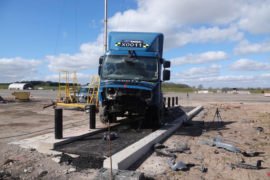 Safetyflex’s new Truckstopper Bridge Bollard has been tested to IWA14, to stop an 18 ton vehicle (N3C) At 30mph with the attack impact at 30 Degrees, with only 80mm Topping.